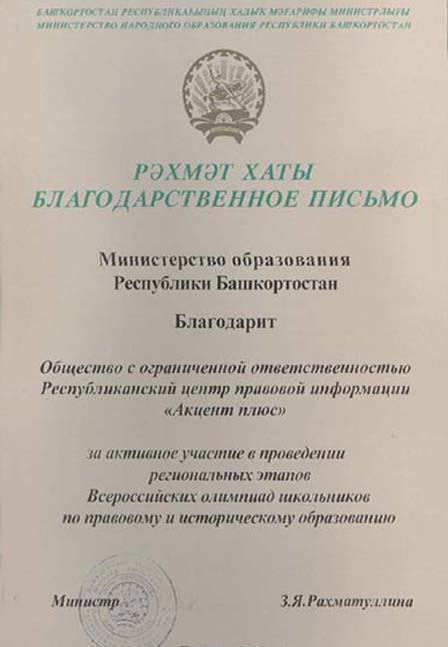 ООО "Акцент плюс" - один из крупных региональных информационных центров Cети распространения СПС КонсультантПлюс в Республике Башкортостан