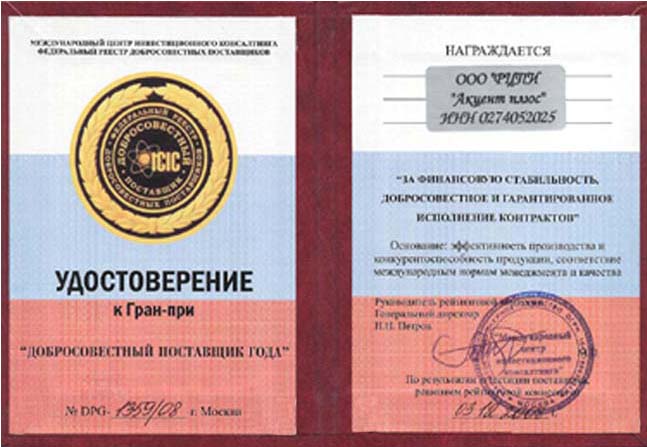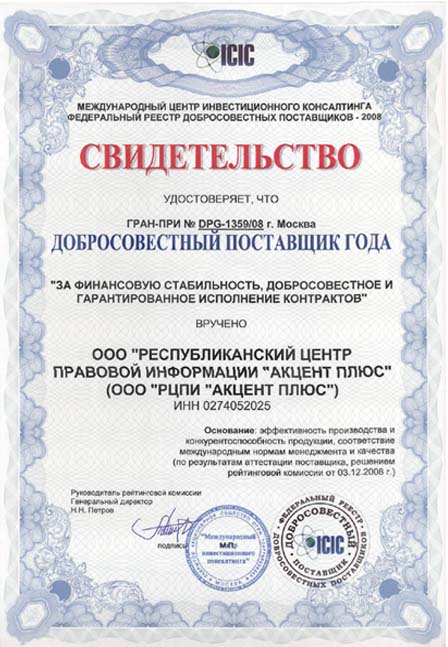 Ежегодно Компания ООО «Акцент плюс» награждается разработчиком систем КонсультантПлюс дипломами и призами за активное развитие и высокие темпы роста.
